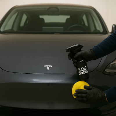 Nano Ceramic Coating creates a glossy, water-repellent layer that makes water slide off instantly, reducing spots and preventing mineral deposits from damaging the paint.